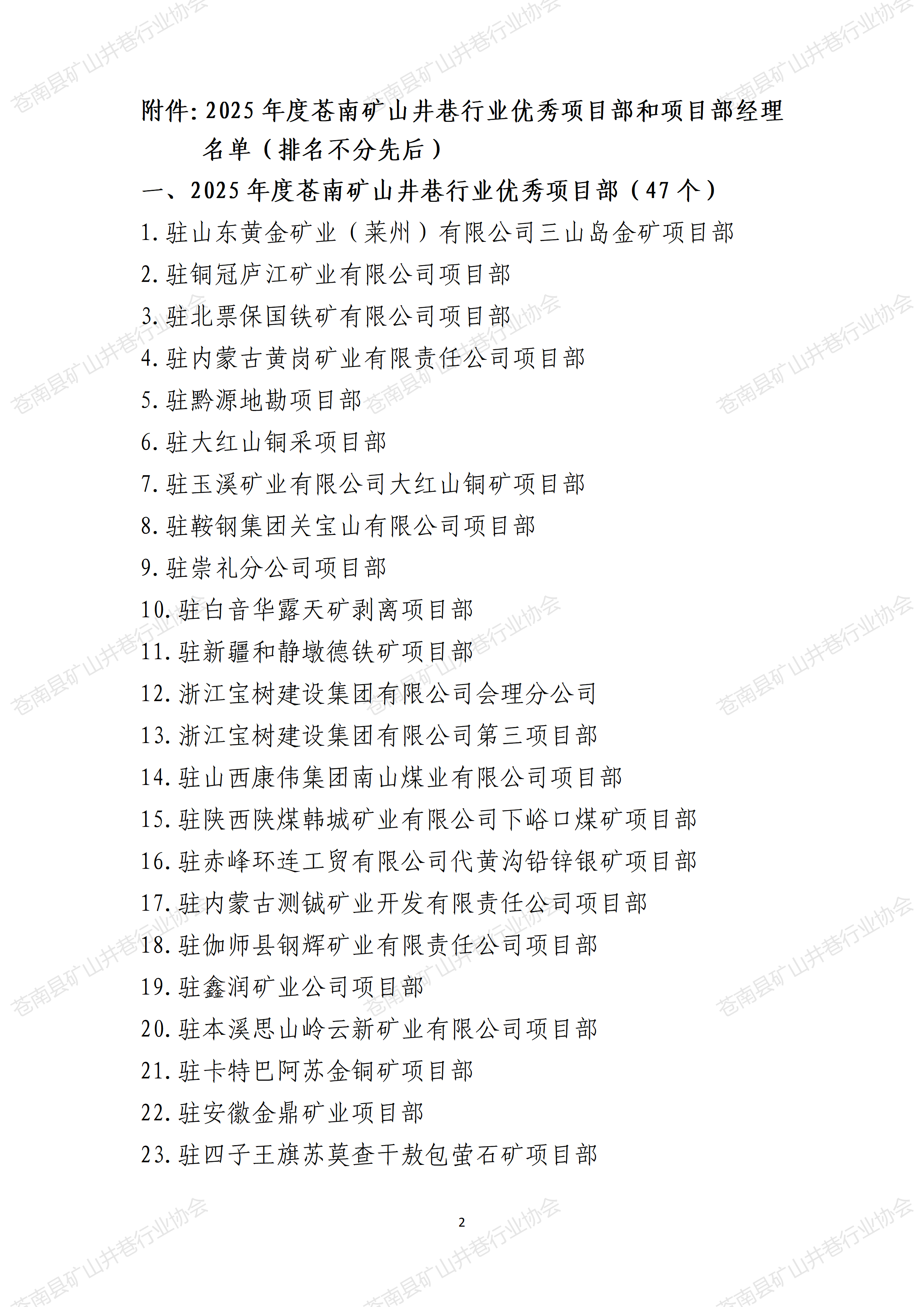 2025年度苍南矿山井巷行业优秀项目部及项目部经理评选结果的公示