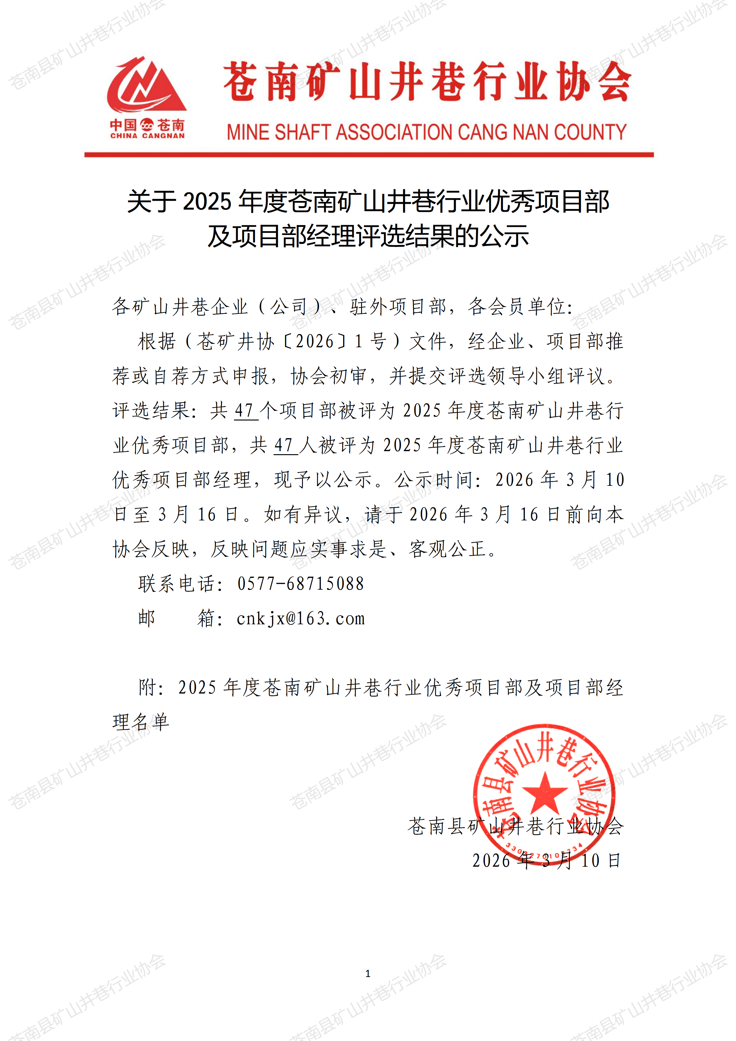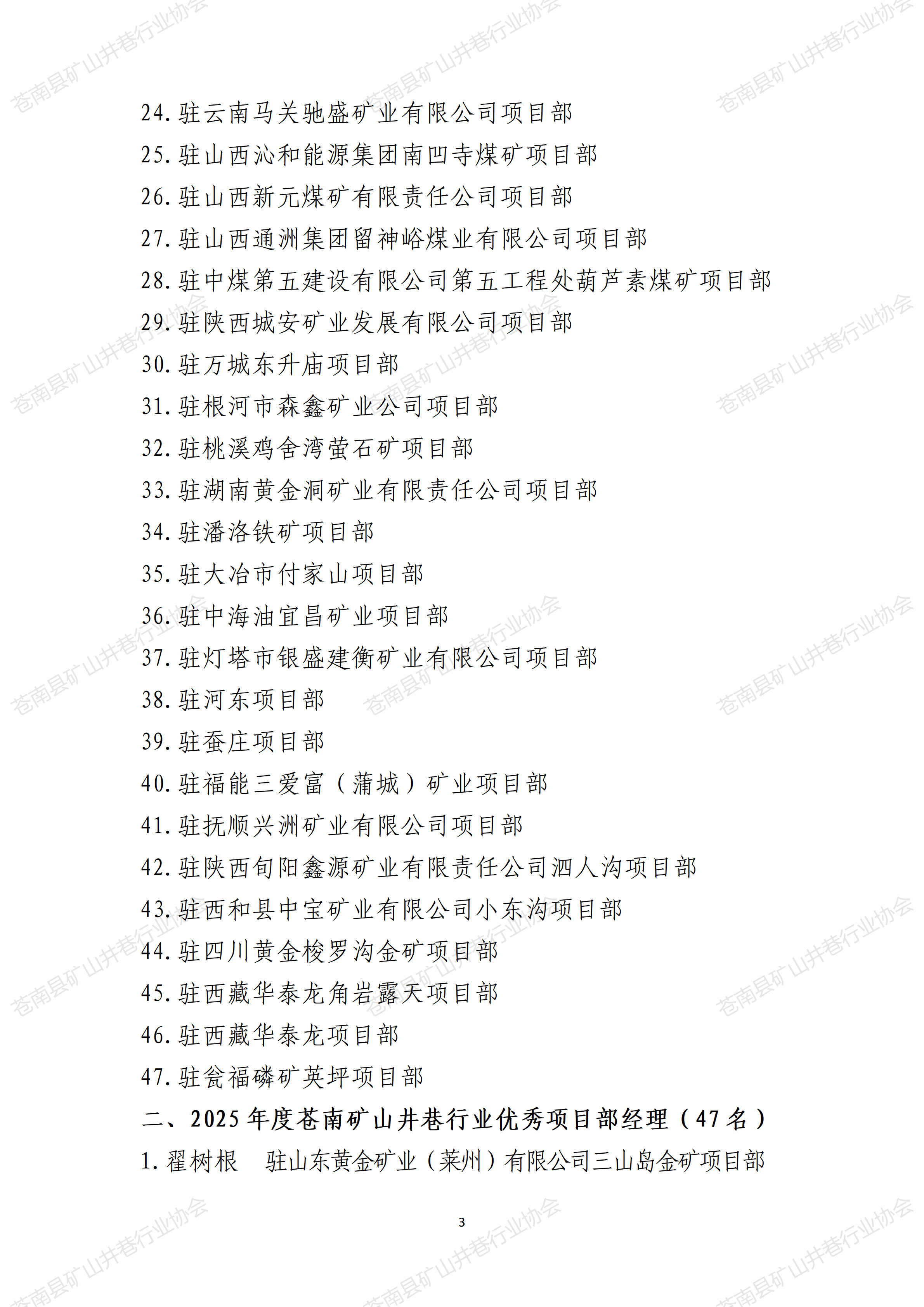 2025年度苍南矿山井巷行业优秀项目部及项目部经理评选结果的公示